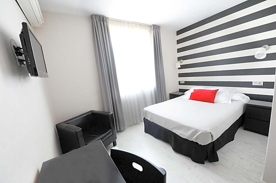 Air-conditioned room with flat-screen TV, work desk and wooden floors.